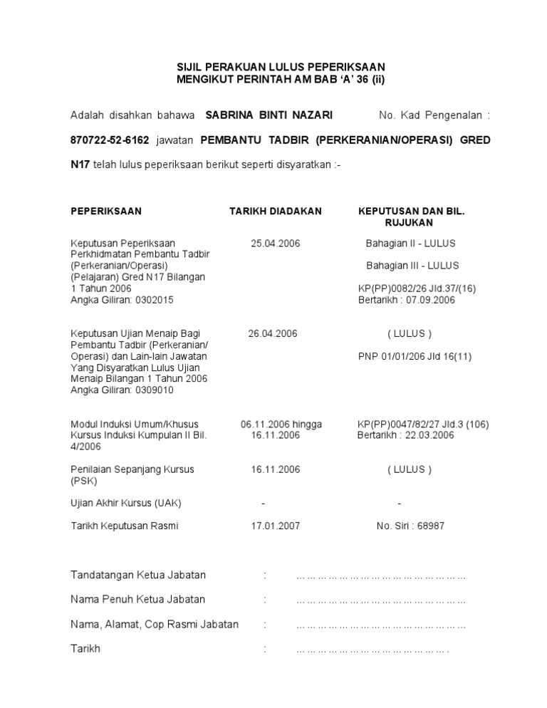 Panduan Menduduki Peperiksaan Bagi Calon Setiausaha Pejabat Gred N17 Panduan Mengenai Manual Prosedur Kerja Dan Fail Meja Rujuk Jadual Peperiksaan Yang Dikeluarkan Oleh Pdf Document from demo.vdocuments.mx Exam ni agak rare sbb masih diadakan secara bertulis dan. Temuduga pembantu tadbir n19 khas untuk beberapa jawatan akan berlangsung sepanjang tahun ini. Tinggalkan mereka yang masih ada mentaliti ini. Sape yang telah mendapat surat panggilan ke ujian bertulis pegawai tadbir n41 untuk kerajaan negeri terengganu? Tetapi, kalau masalah badan, paini tetap nomor satu. Puan salbiah binti sulaiman n 17 dan mohamad taufik mat sauki juruteknik komputer. Pembantu tadbir (perkeranian/operasi) gred n17. Awal kisah ini terjadi lebih kurang hampir 20 tahun yang lampau pada saat isteriku baru melahirkan anak kami yang semata wayang.