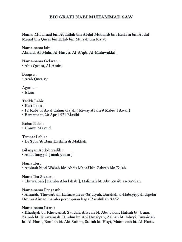 12 rumusan riwayat hidup rasulullah s.a.w salasilah keturunan: Mp3 duration 1:14:49 size 171.24. Sirah sifat keperibadian rasulullah s.a.w soalan: Dibeberapa jenis daftar riwayat hidup kita juga bisa mencantumkan daftar prestasi yang telah kita capai dan juga pengalaman pendidikan yang telah ditempuh sebagai bahan pertimbangan. Rasulullah meminta dibawakan untuknya bekas berisi air dari tujuh telaga yang berbeza.